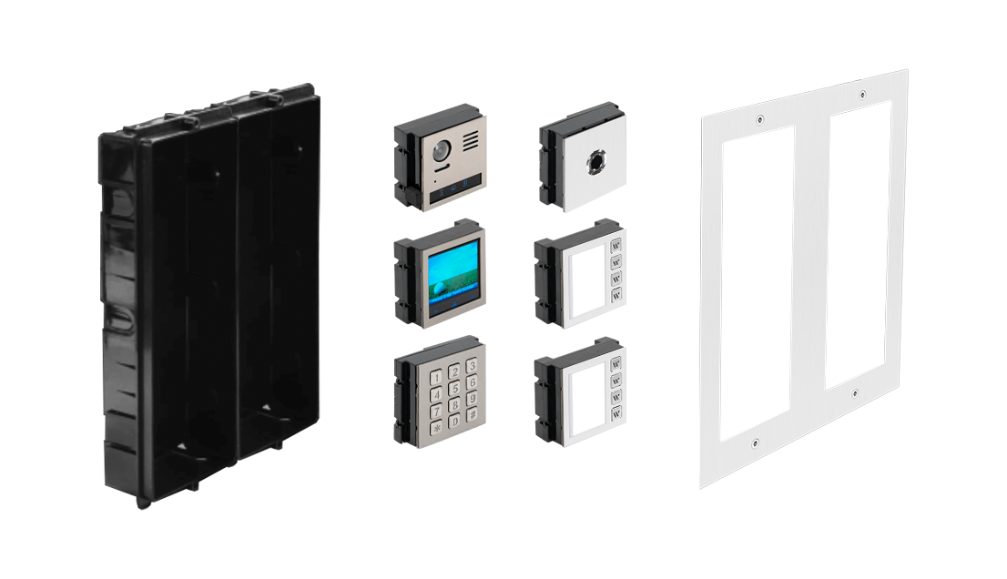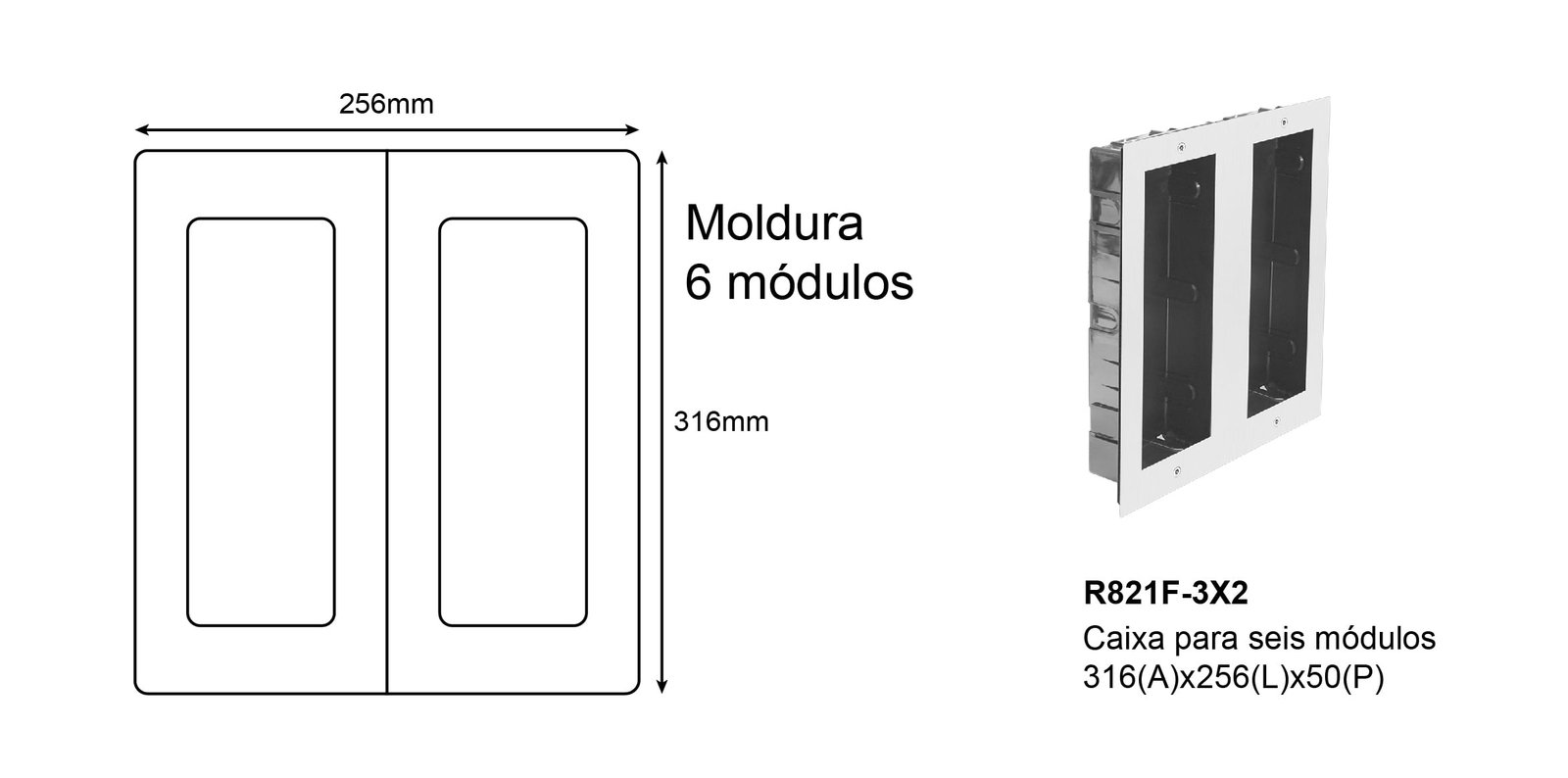 Moldura 6 módulos para instalação de encastrar compatíveis com todos os equipamentos da gama 2Easy. Configuração diversificada com ajuda dos módulos R821.