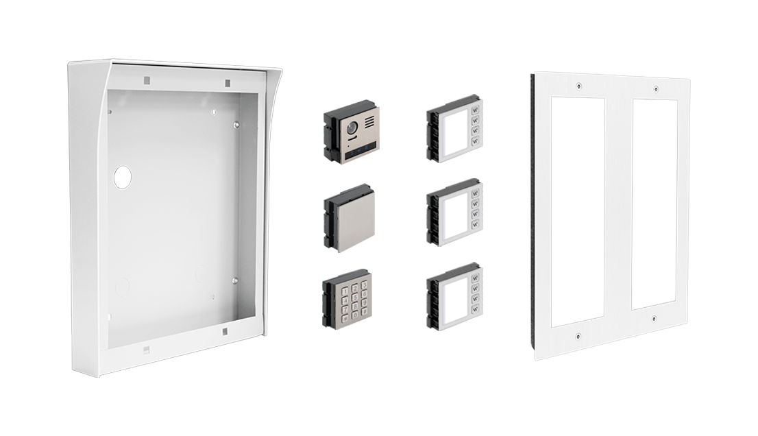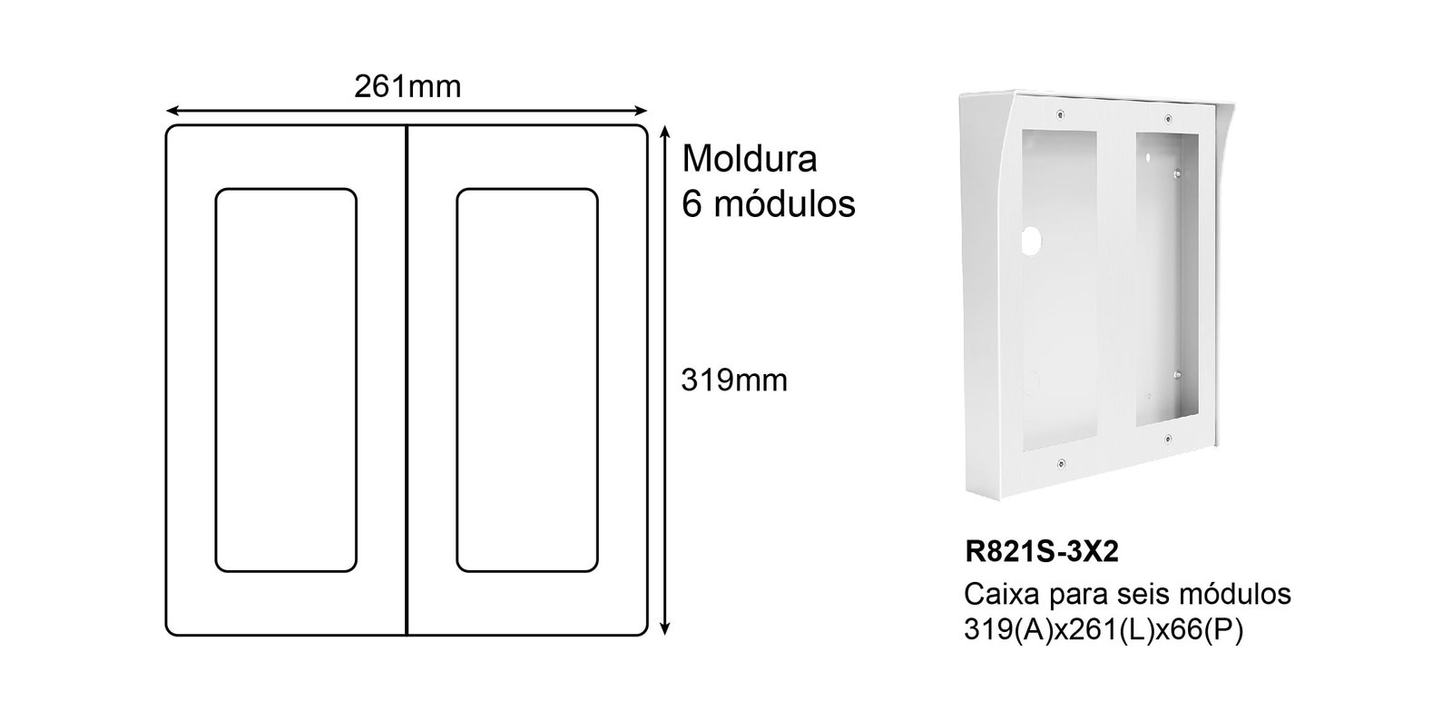 Moldura 6 módulos para instalação saliente compatíveis com todos os equipamentos da gama 2Easy. Configuração diversificada com ajuda dos módulos R821.